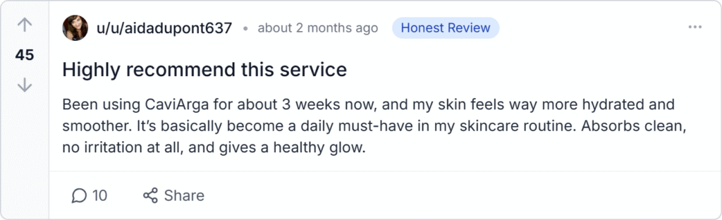 Accurate and unbiased evaluation is crucial when choosing skincare products. Genuine CaviArgan reviews and complaints were analyzed from neutral platforms like Reddit, TrustPilot, BBB, Amazon, Quora, YouTube, TikTok, Facebook, and Instagram. This multi-source approach provides a realistic snapshot of performance and reliability. Our goal is to help users make informed decisions based on verified experiences rather than marketing claims.